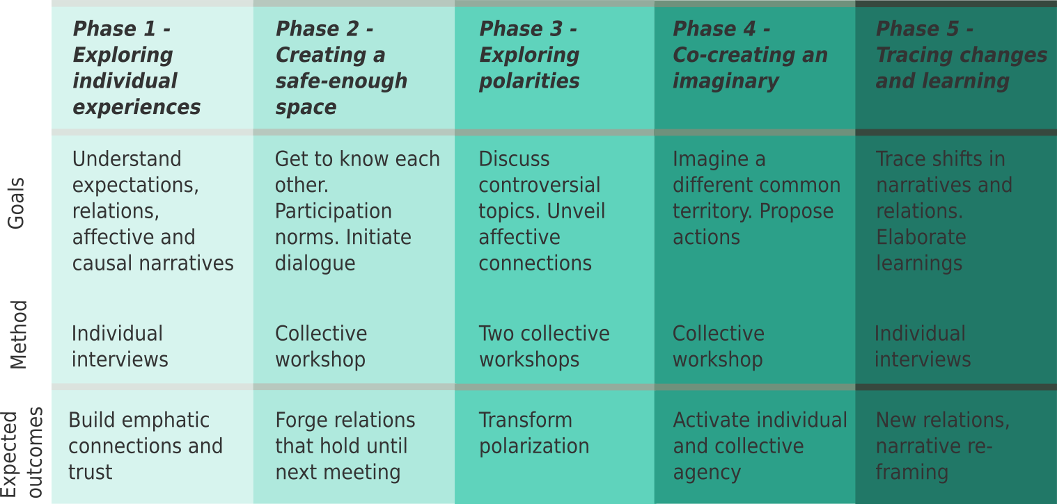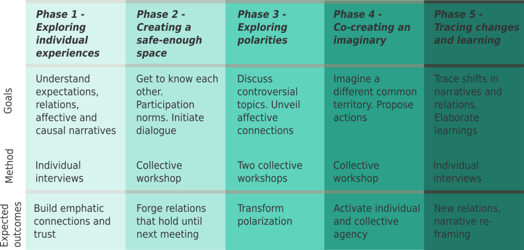 ¿Cómo se puede co-producir conocimiento sobre problemas socioecológicos ‘wicked’, caracterizados por la degradación ambiental severa, el conflicto multiactor, la polarización social y fuertes asimetrías de poder? La pregunta ya me predisponía a explorar los CÓMO, los métodos, las tácticas, las prácticas, eso que había aprendido en mis dos años en Wikitoki y tanto les gusta a los amigos de Colaborabora. También en la formación en facilitación de IFACE cuyas herramientas quería trasladar a mi ámbito de investigación.